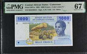 Central African States Cameroun 1000 Fr. 2002 P 207Ue Superb Gem UNC PMG 67 EPQ