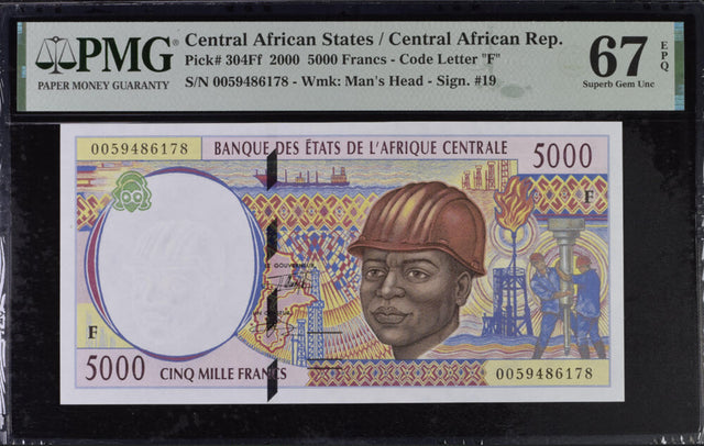 Central African States Republic 5000 Fr. 2000 P 304Ff Superb Gem UNC PMG 67 EPQ