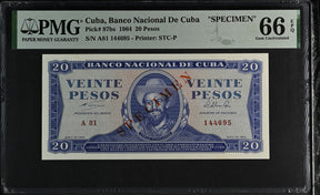 Central America 20 Pesos 1964 P 97bs Specimen GEM UNC PMG 66 EPQ
