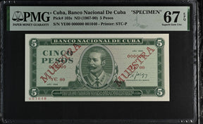 Central America 5 Pesos 1988 P 103 s Specimen Superb GEM UNC PMG 67 EPQ