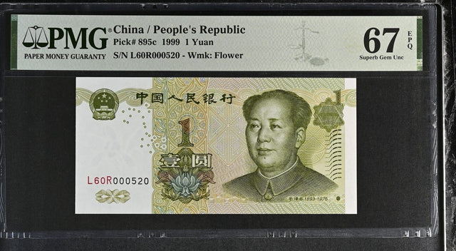 China 1 Yuan 1999 P 895 c Superb Gem UNC PMG 67 EPQ