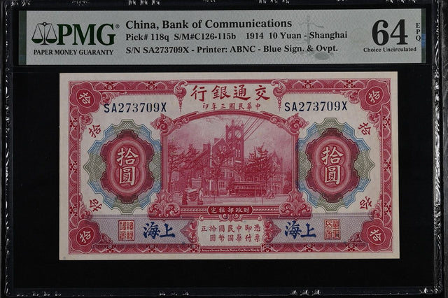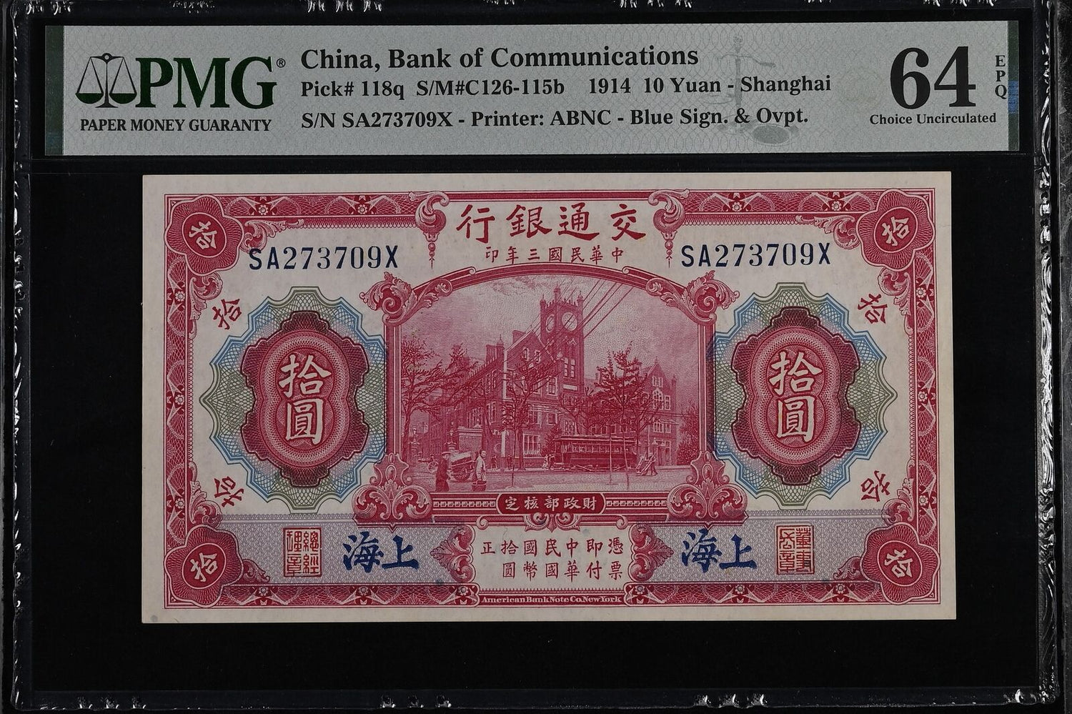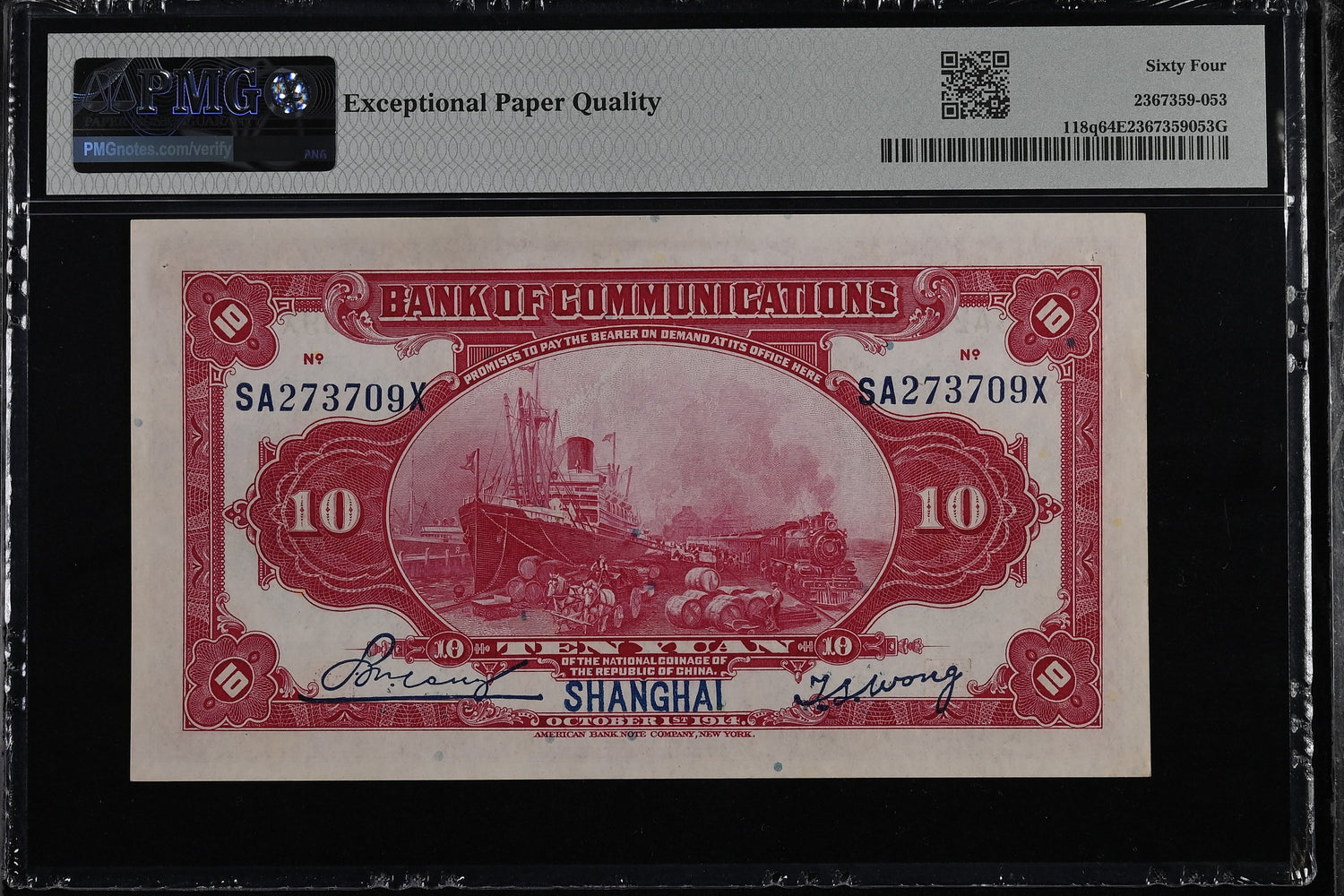 China 10 Yuan 1914 P 118 q Choice UNC PMG 64 EPQ