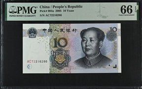 China 10 Yuan 2005 P 904 a Gem UNC PMG 66 EPQ