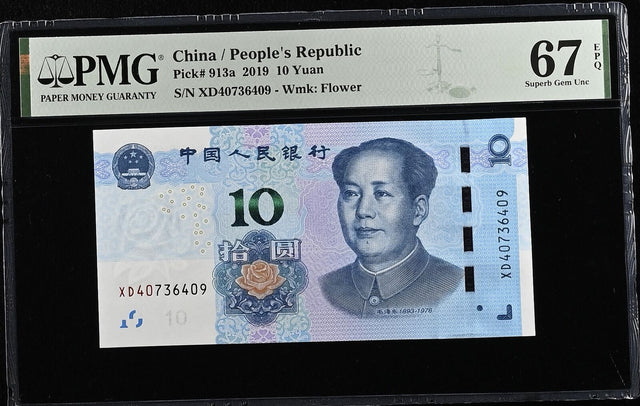 China 10 Yuan 2019 P 914 a Superb Gem UNC PMG 67 EPQ