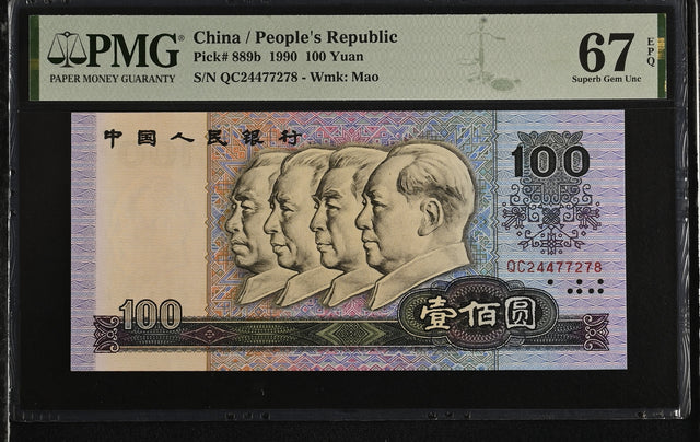 China 100 Yuan 1990 P 889 b Superb Gem UNC PMG 67 EPQ
