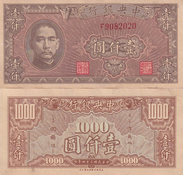 China 1000 Yuan 1945 P 294 AUnc