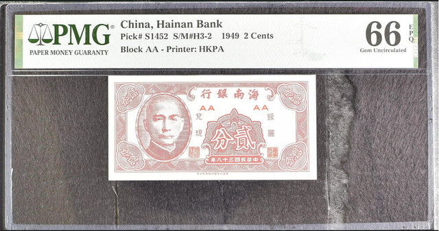 China 2 Cents 1949 P S1452 Gem UNC PMG 66 EPQ