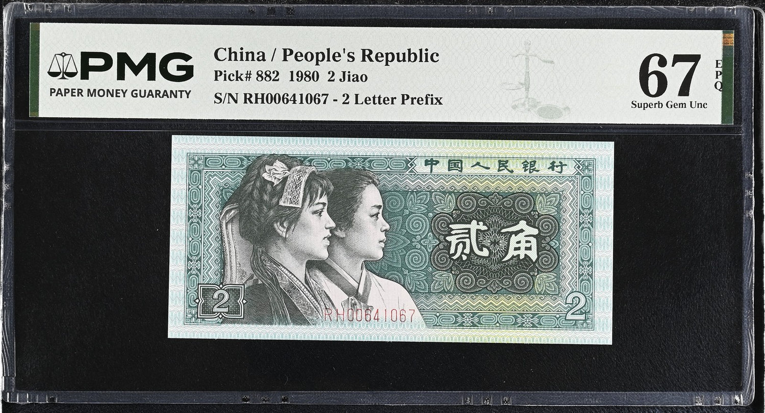 China 2 Jiao 1980 P 882 Superb Gem UNC PMG 67 EPQ