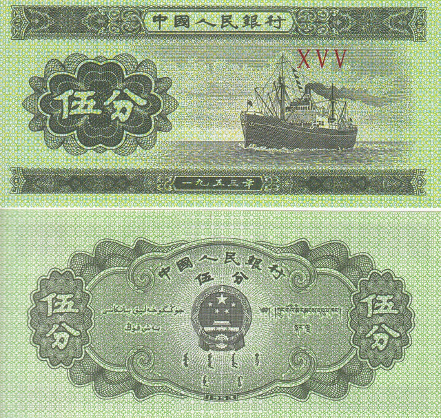 China 5 Fen 1953 P 862 b UNC