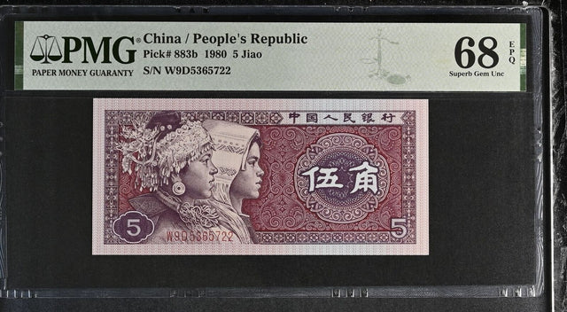 China 5 Jiao 1980 P 883 b Superb Gem UNC PMG 68 EPQ