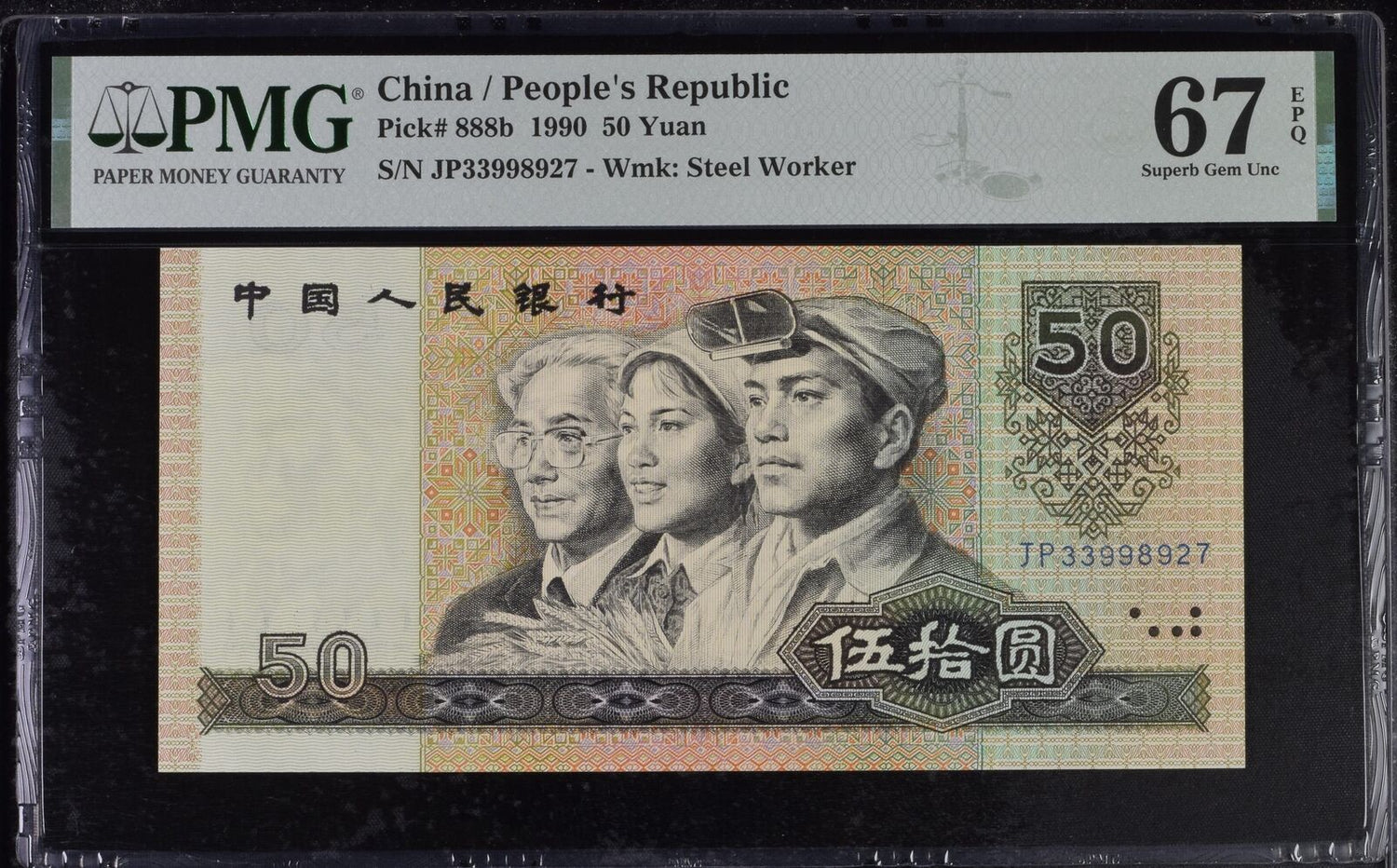 China 50 Yuan 1990 P 888 b Superb Gem UNC PMG 67 EPQ