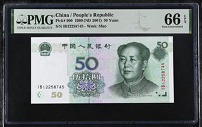China 50 Yuan 1999 ND 2001 P 900 Gem UNC PMG 66 EPQ