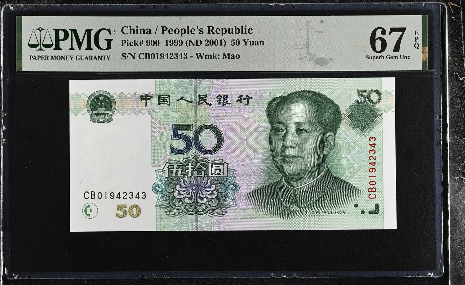 China 50 Yuan 1999 P 900 Superb Gem UNC PMG 67 EPQ