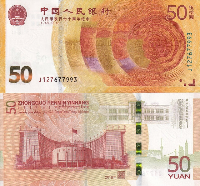 China 50 Yuan 2018 70th Commemorative P 911 UNC