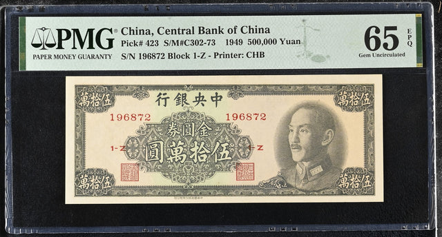 China 500000 Yuan 1949 P 423 Gem UNC PMG 65 EPQ
