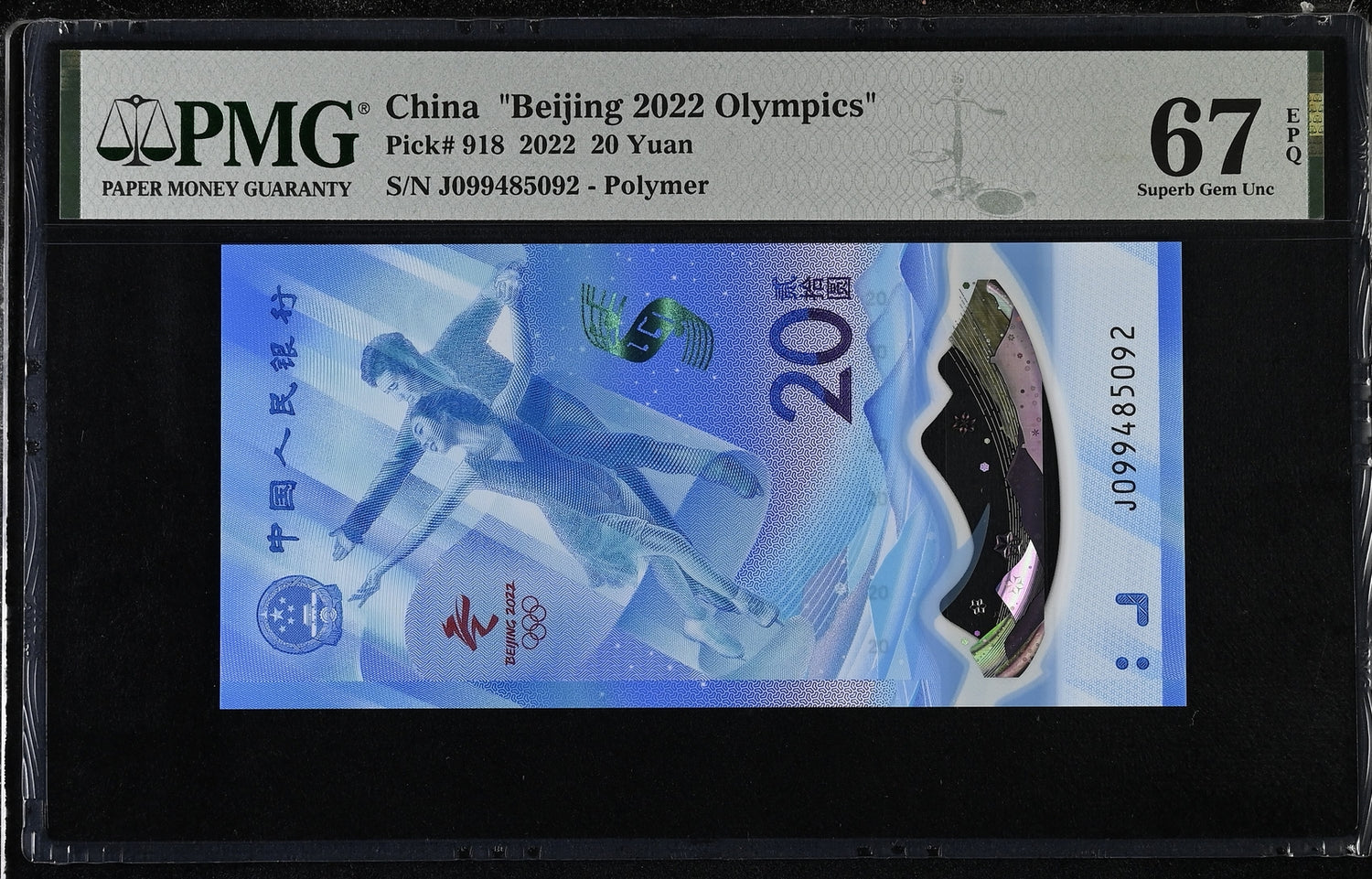 China Beijing Olympic Games 20 Yuan 2022 P 918 Superb Gem UNC PMG 67 EPQ
