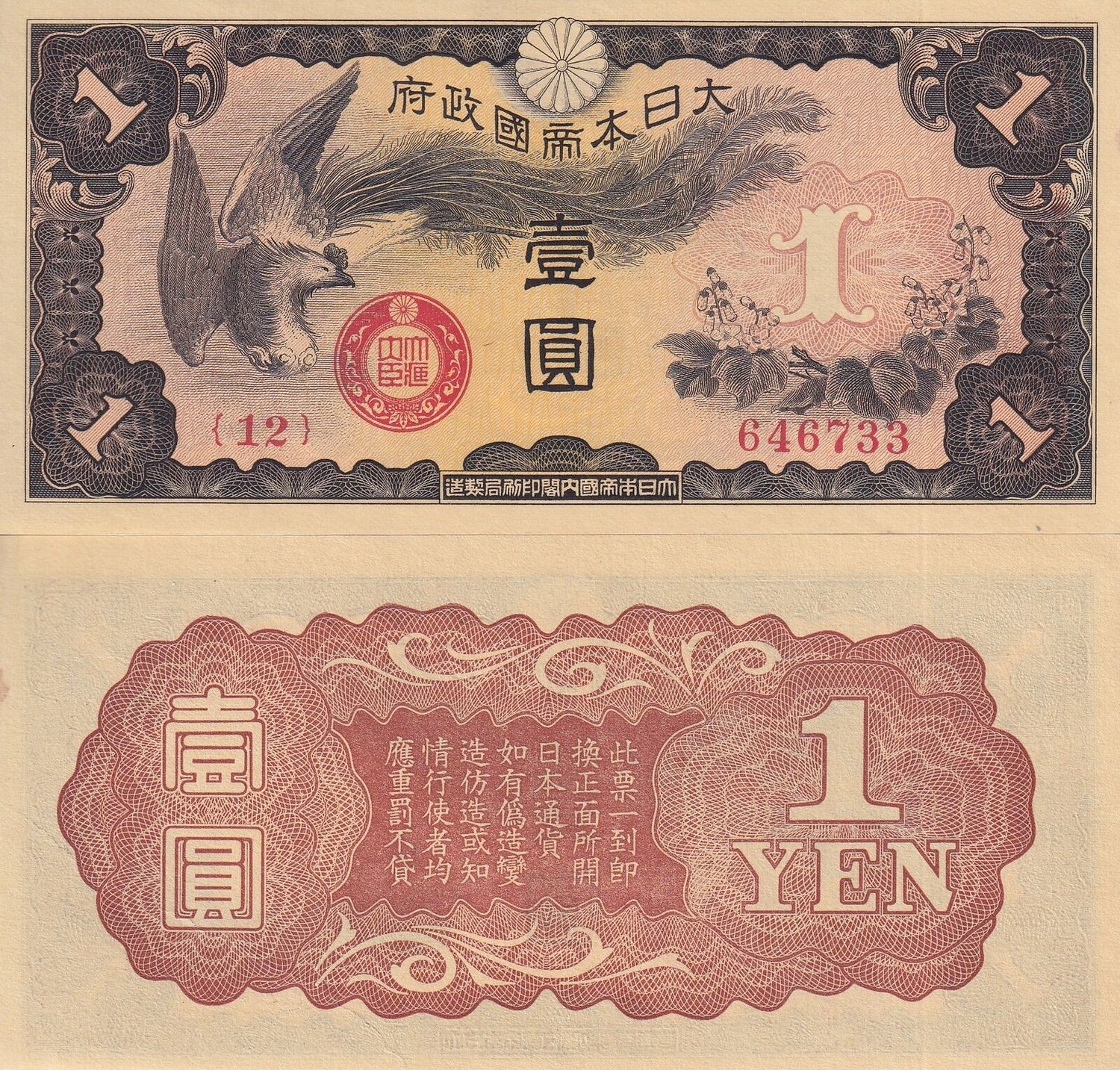 China Japanese Military WWII 1 Yen ND 1940 P M15 AUnc
