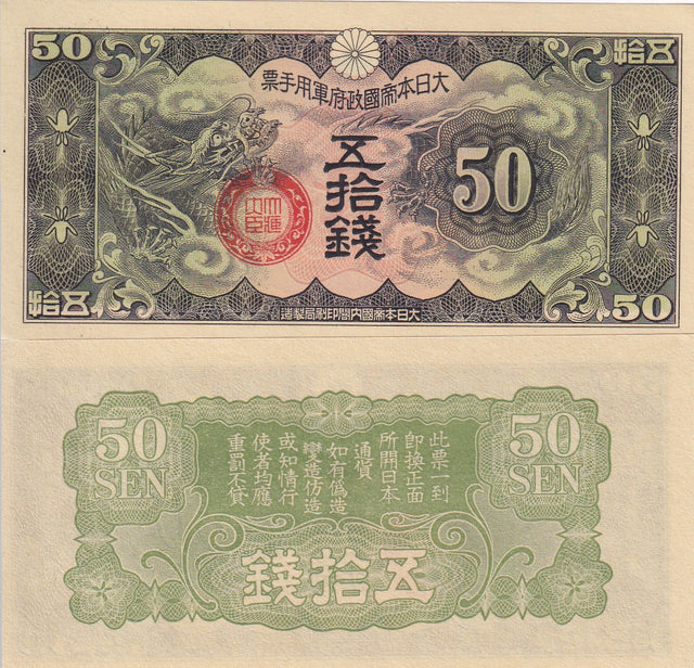 CHINA - Japanese Military WWII 50 Sen ND 1938 P M14 UNC