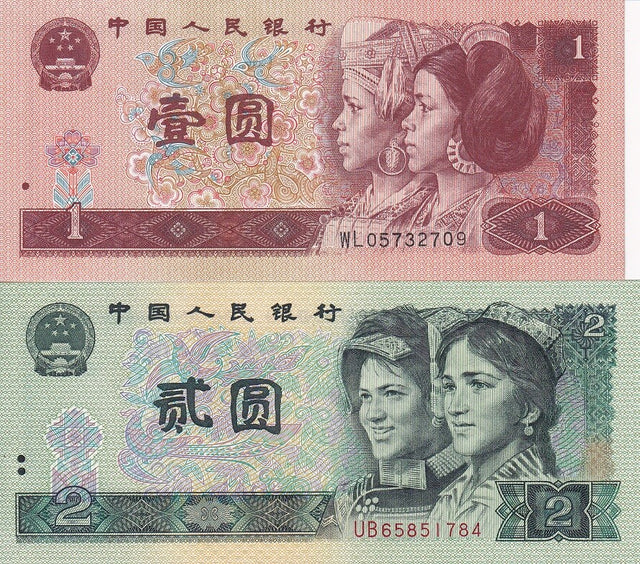 China Set 2 UNC 1 2 Yuan 1990-1996 P 884 g 885 b