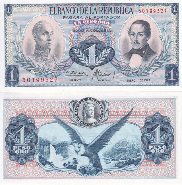 COLOMBIA 1 PESO ORO 1977 P 404 UNC