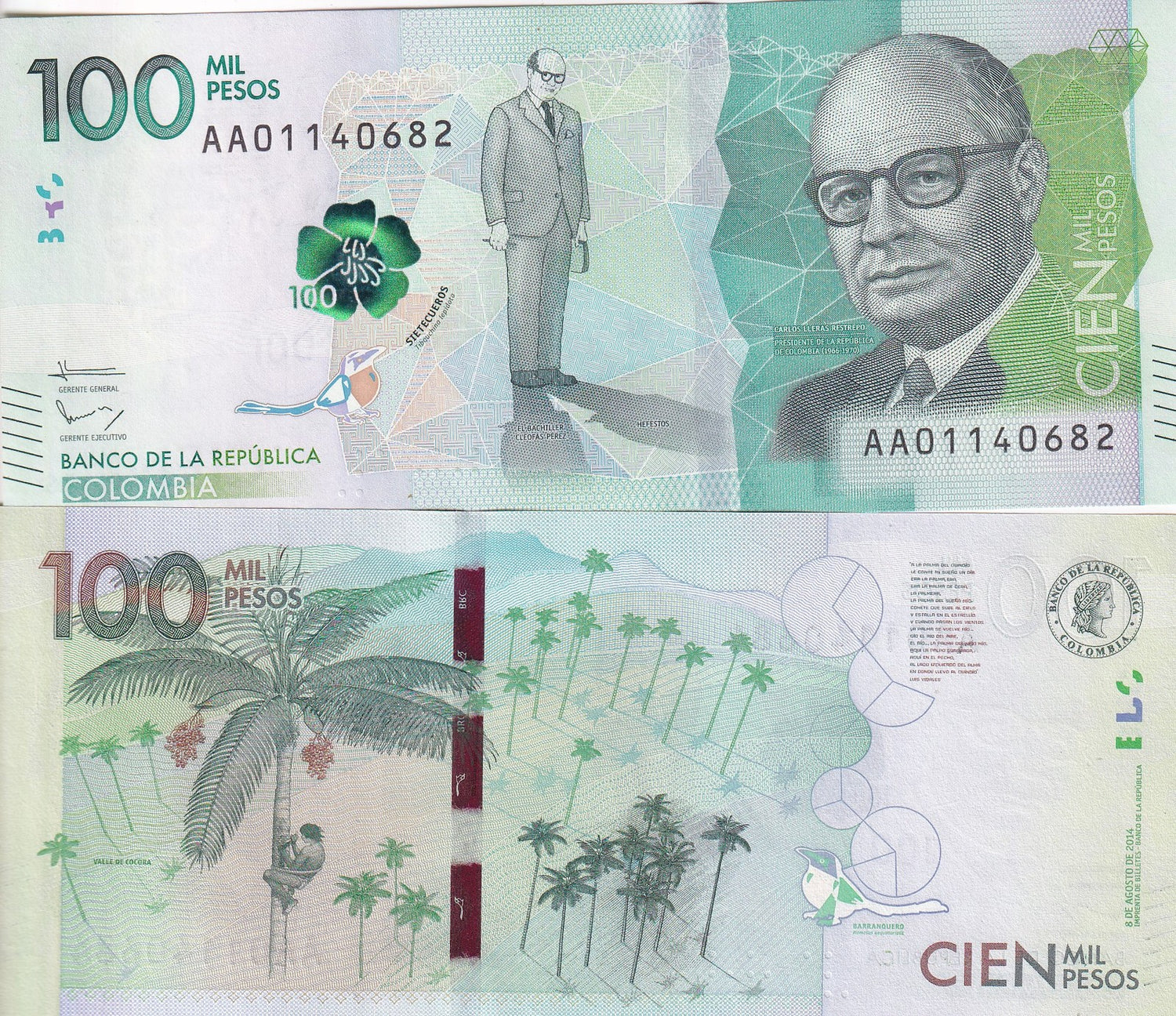 Colombia 100000 Pesos 2014 P 463 AA Prefix UNC