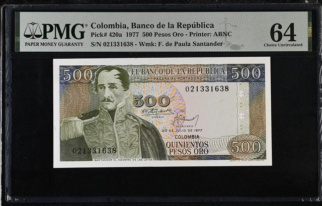 Colombia 500 PESOS 1977 P 420 a Choice UNC PMG 64