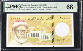 Comoros 10000 Francs ND 1997 P 14 Superb Gem UNC PMG 68 EPQ