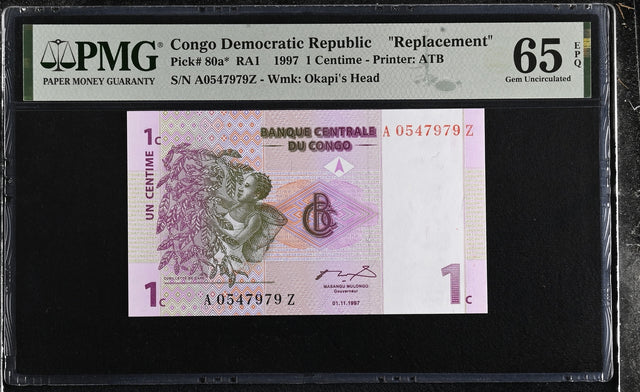 Congo 1 Centime 1997 P 80 a* Replacement Gem UNC PMG 65 EPQ