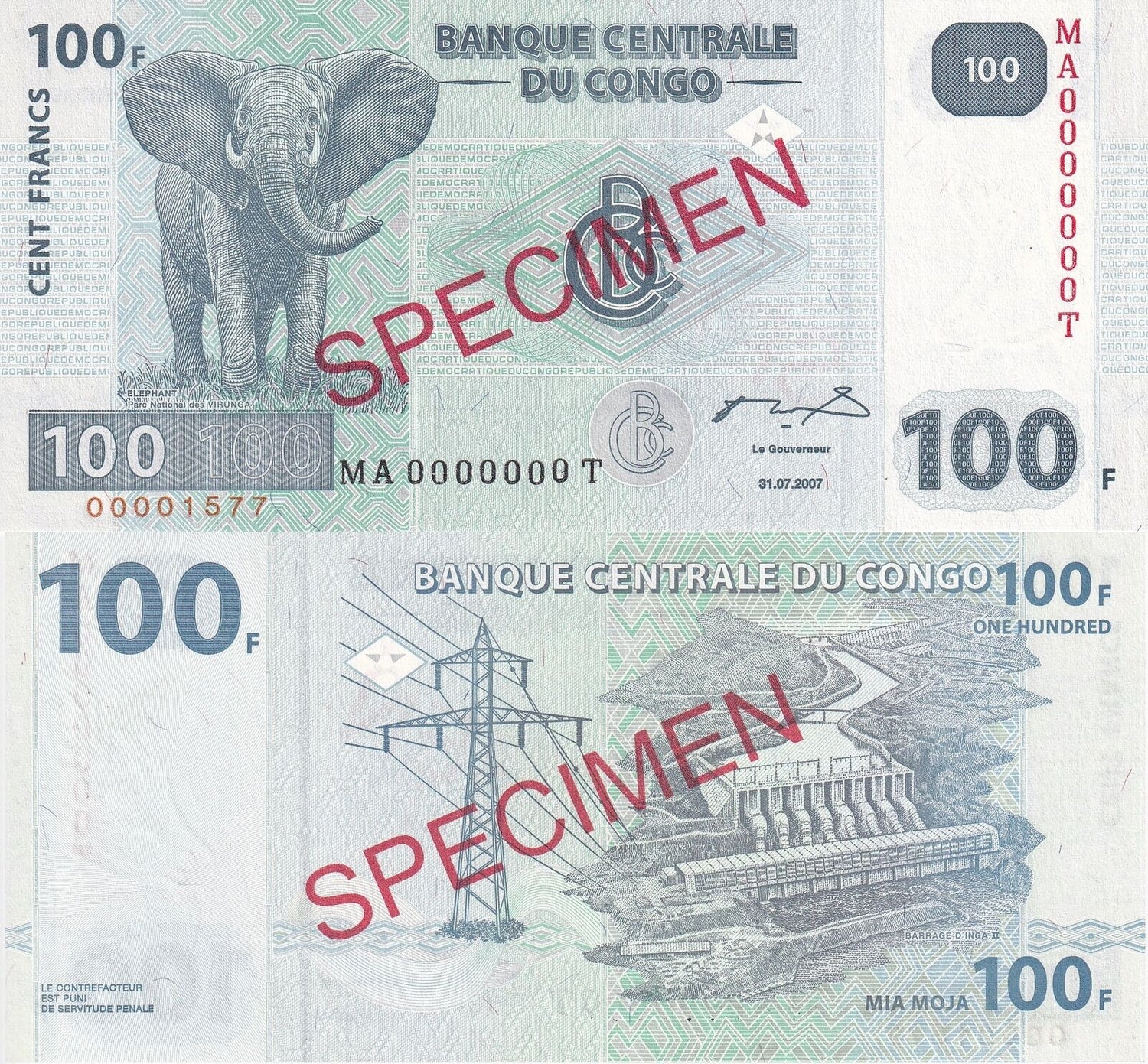 Congo 100 Francs 2007 P 98 Specimen UNC