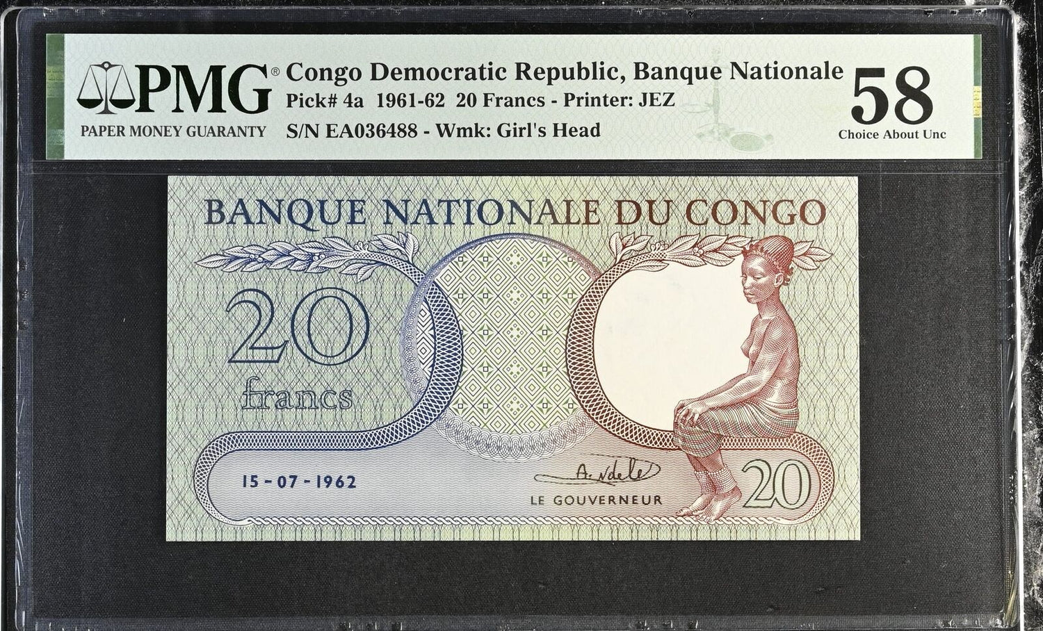 Congo 20 Francs 1962 P 4 a Choice About UNC PMG 58