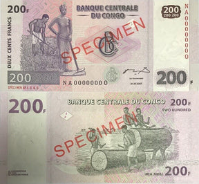 Congo 200 Francs 2007 P 99 as Specimen NA-Q UNC