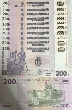 Congo 200 Francs 2007 P 99 UNC LOT 10 PCS