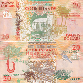 Cook Islands 20 Dollars 1992 P 9 AAA Prefix UNC