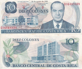 Costa Rica 10 Colones 1985 P 237 b UNC Little Yellow Tone