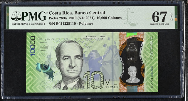 Costa Rica 10000 Colones 2019 ND 2021 P 283 a Polymer Superb Gem UNC PMG 67 EPQ