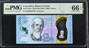 Costa Rica 2000 Colones 2018 ND 2020 P 281 a Polymer Gem UNC PMG 66 EPQ