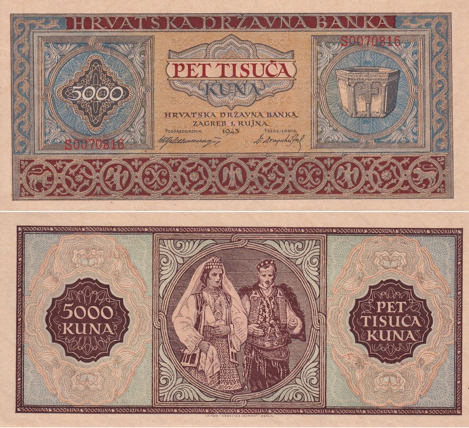 Croatia 5000 Kuna 1943 P 13 UNC