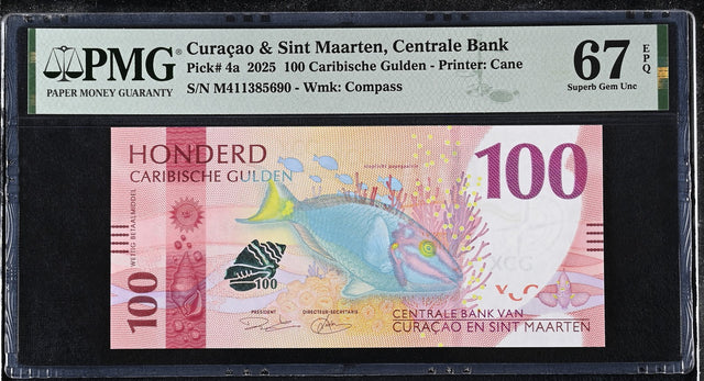 CURACAO & SINT MAARTEN 100 Gulden 2025 P 4 a Superb Gem UNC PMG 67 EPQ
