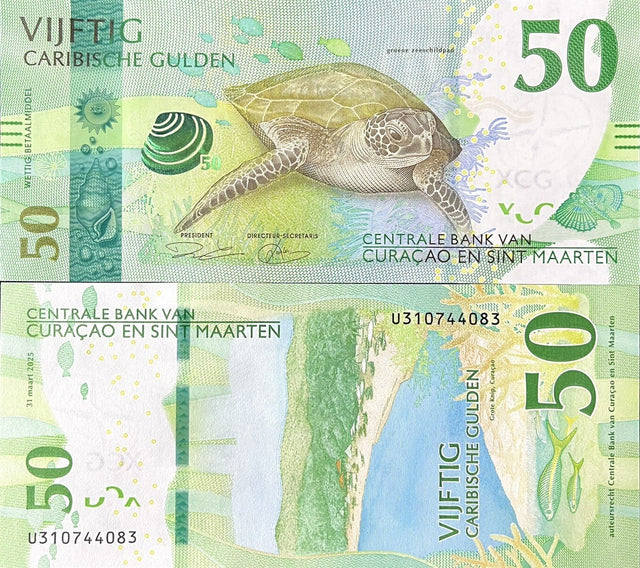 Curacao & Sint Maarten 50 Gulden 2025 P 3 Turle AUnc