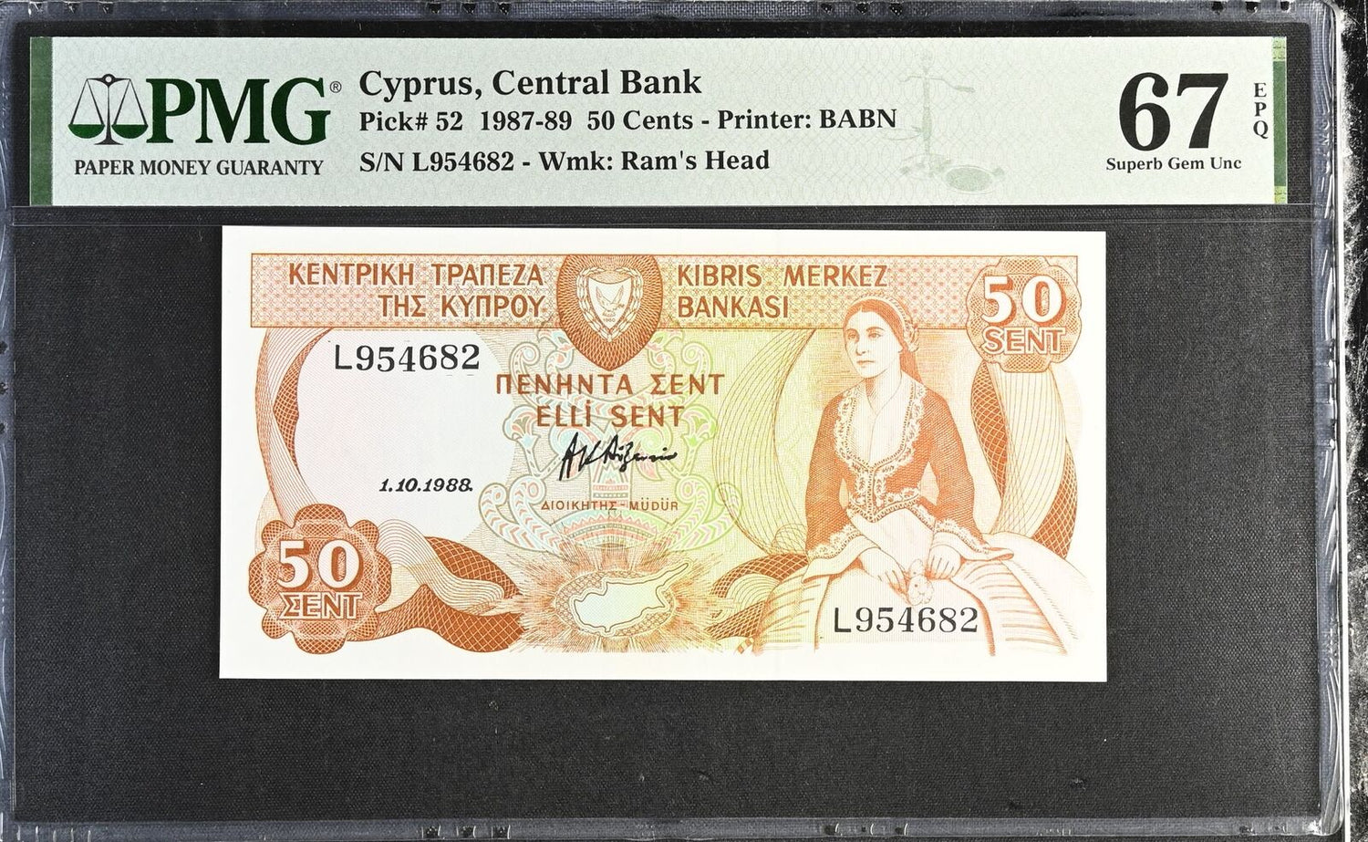 Cyprus 50 Cents 1988 P 52 Superb Gem UNC PMG 67 EPQ