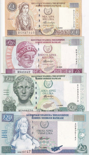 Cyprus Set 4 PCS 1 5 10 20 Pound 2003-2005 P 60 61 62 63 UNC