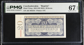 Czechoslovakia 20 Korun 1953 ND 2024 P 72Arp Reprint Superb Gem UNC PMG 67 EPQ