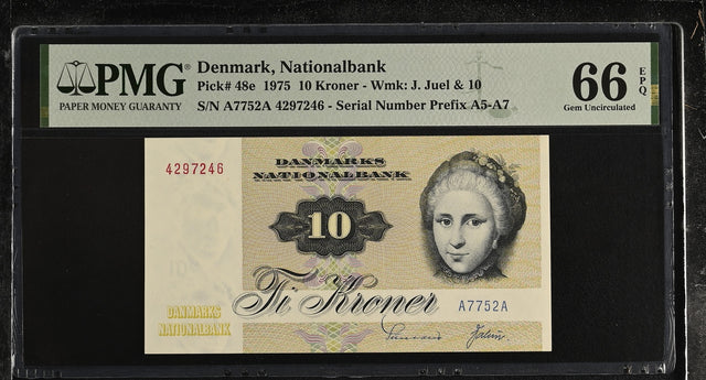 Denmark 10 Kroner 1975 P 48 e Gem UNC PMG 66 EPQ