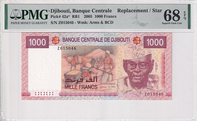 Djibouti 1000 Francs 2005 P 42 a* Z Replacement Superb Gem UNC PMG 68 EPQ TOP
