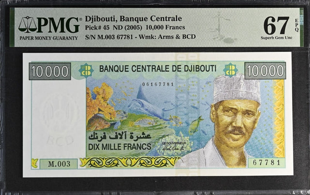Djibouti 10000 Francs ND 2005 P 45 Superb GEM UNC PMG 67 EPQ