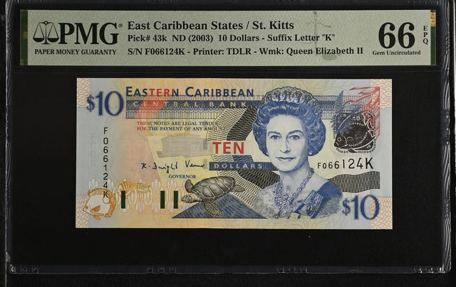 East Caribbean 10 Dollars ND 2003 P 43 k Gem UNC PMG 66 EPQ