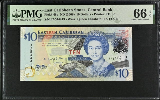East Caribbean 10 Dollars ND 2008 P 48 a Gem UNC PMG 66 EPQ