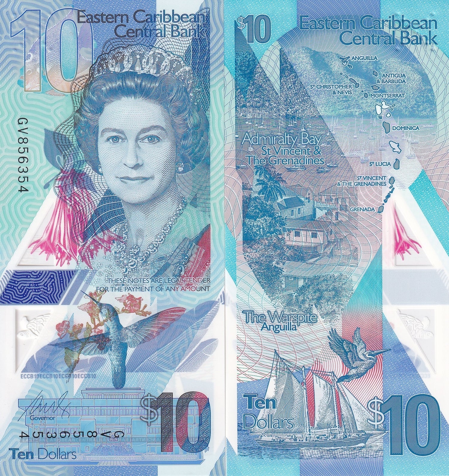 East Caribbean 10 Dollars ND 2019 P 56 Polymer QE II UNC
