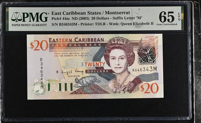 East Caribbean 20 Dollars ND 2003 P 44 m Suffix Letter M Gem UNC PMG 65 EPQ