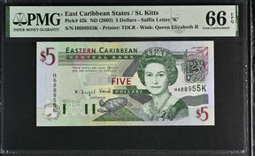 East Caribbean 5 Dollars ND 2003 P 42 k Gem UNC PMG 66 EPQ